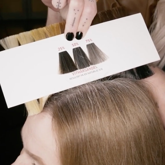 Generell ist es auch angebrachter, graues Haar einen Ton heller als die Originalfarbe zu färben, da dunkle Töne dazu neigen, scharf und unnatürlich zu wirken. Darüber hinaus wird die Haaransätze besser sichtbar. Gut zu wissen ist auch, dass graues und blondiertes Haar kalte Pigmente leichter aufnimmt und warme Pigmente abweist. Infolgedessen können aschige Töne auf weißem Haar manchmal zu kalt aussehen.