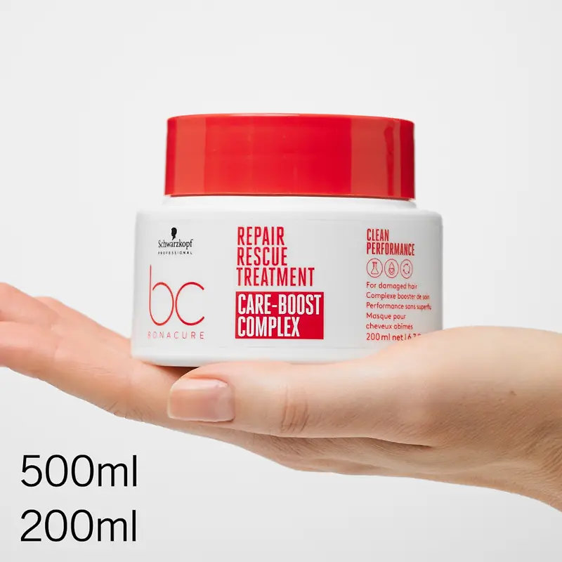Tiefenwirksame regenerierende Maske für geschädigtes, geschwächtes und chemisch beanspruchtes Haar. Bonacure Repair Rescue Treatment mit dem innovativen Care-Boost Complex und der Technologie Vegan Care Complex + Arginin hilft, die Haarfaser zu rekonstruieren, ihre Widerstandskraft zu erhöhen und dem Haar Kraft, Elastizität und strahlenden Glanz zurückzugeben – bereits nach einer Anwendung.